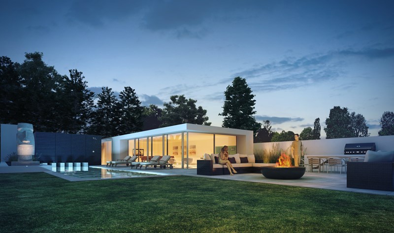 A pool and recreation complex with gym, games, changing rooms and store in the rear garden of an existing house. Designed to comply with the "Permitted Development” rules and consequently not requiring Town Planning permission. In the private estate of Hutton Mount, Shenfield, Essex.