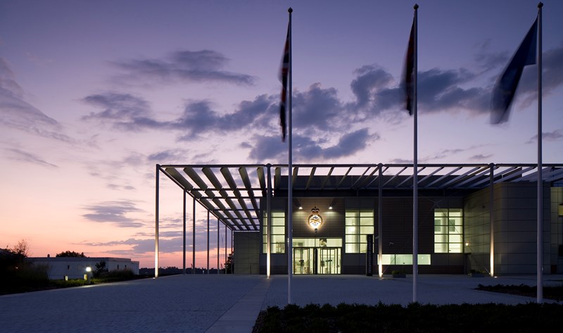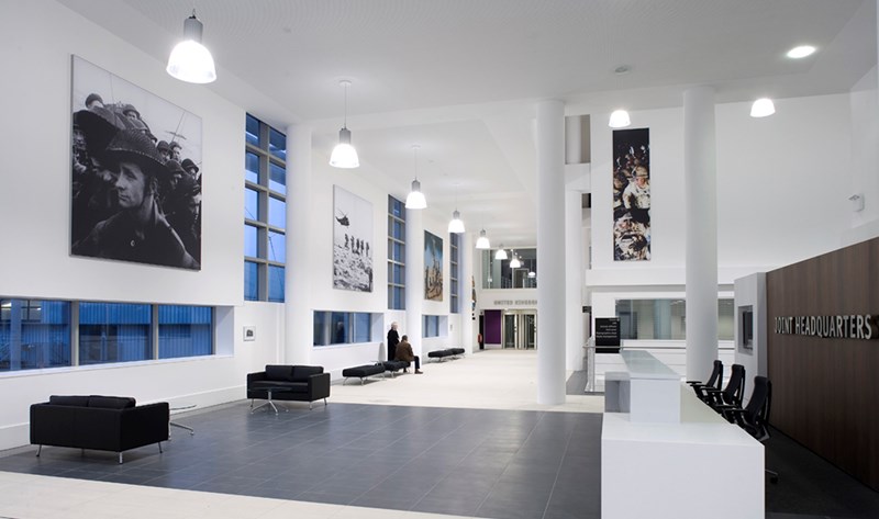 It forms the focal point of the regeneration project which also includes new Single Living Quarters, Church, Communal Building, Maritime Operations Centre, gatehouse, sports hall, crèche and nursery, all designed by David Lees. The Headquarters building was opened by Her Majesty Queen Elizabeth II, accompanied by HRH The Duke of Edinburgh on 6 May 2010. It adjoins the existing NATO HQ building and provides radically more effective, secure and distinctive new accommodation. It will enable the implementation of step-change efficiencies in the operational planning and control of UK Joint Forces in locations worldwide.
