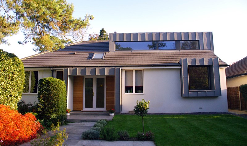 A compact extension to a 1930's bungalow in Ashtead, Surrey, completely transforming it from dowdy to "wow". A significant town planning victory, the strong but balanced asymmetrical composition of three new zinc-clad elements persuaded the planners to go against their local policy and allow a non-like-for-like extension with what is, effectively, a normally forbidden box dormer.